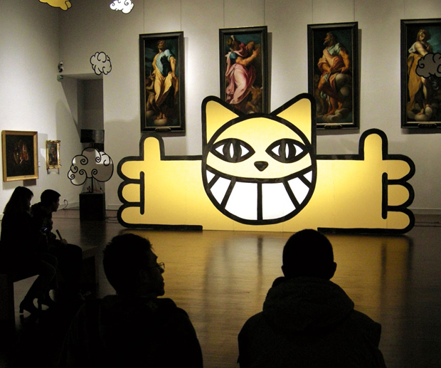 L’art de Thomas Vuille – Monsieur Chat – a progressivement quitté la rue pour se décliner sur des toiles, des pinceaux, et être exposé par Studio 55 à la galerie Cardin.